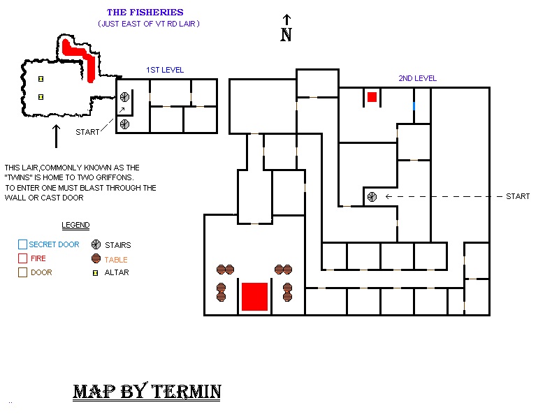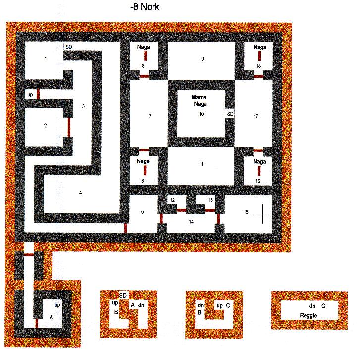 | Light Brown = Cave Walls | Violet = Secret Door | Orange = Column |