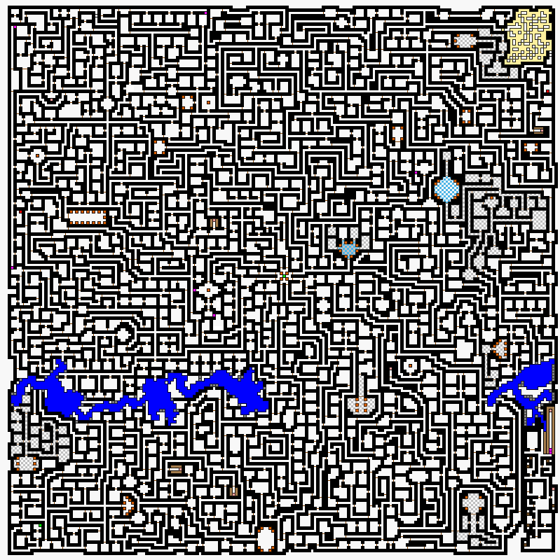 | Light Grey Or White = Ground | Dark Grey = Broken Walls | Dark Blue = Water |